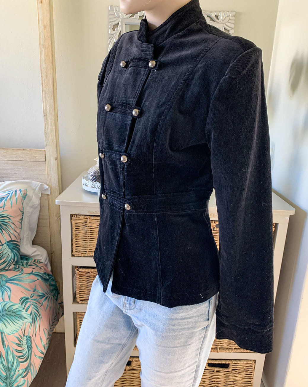 BLACK CORDUROY MILITARY-STYLE JACKET – SIZE 12 (CHARTER CLUB)