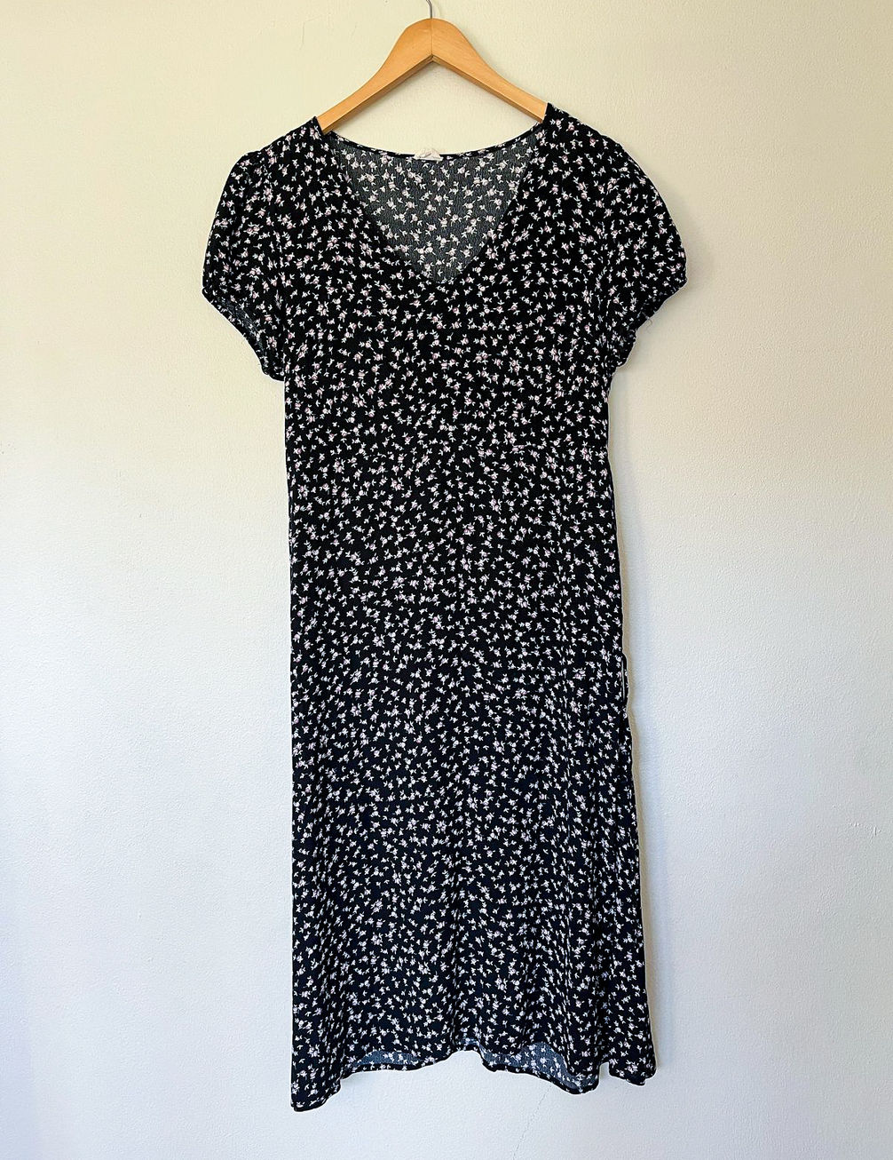 BLACK FLORAL MIDI DRESS – SIZE LARGE (COTTON ON)