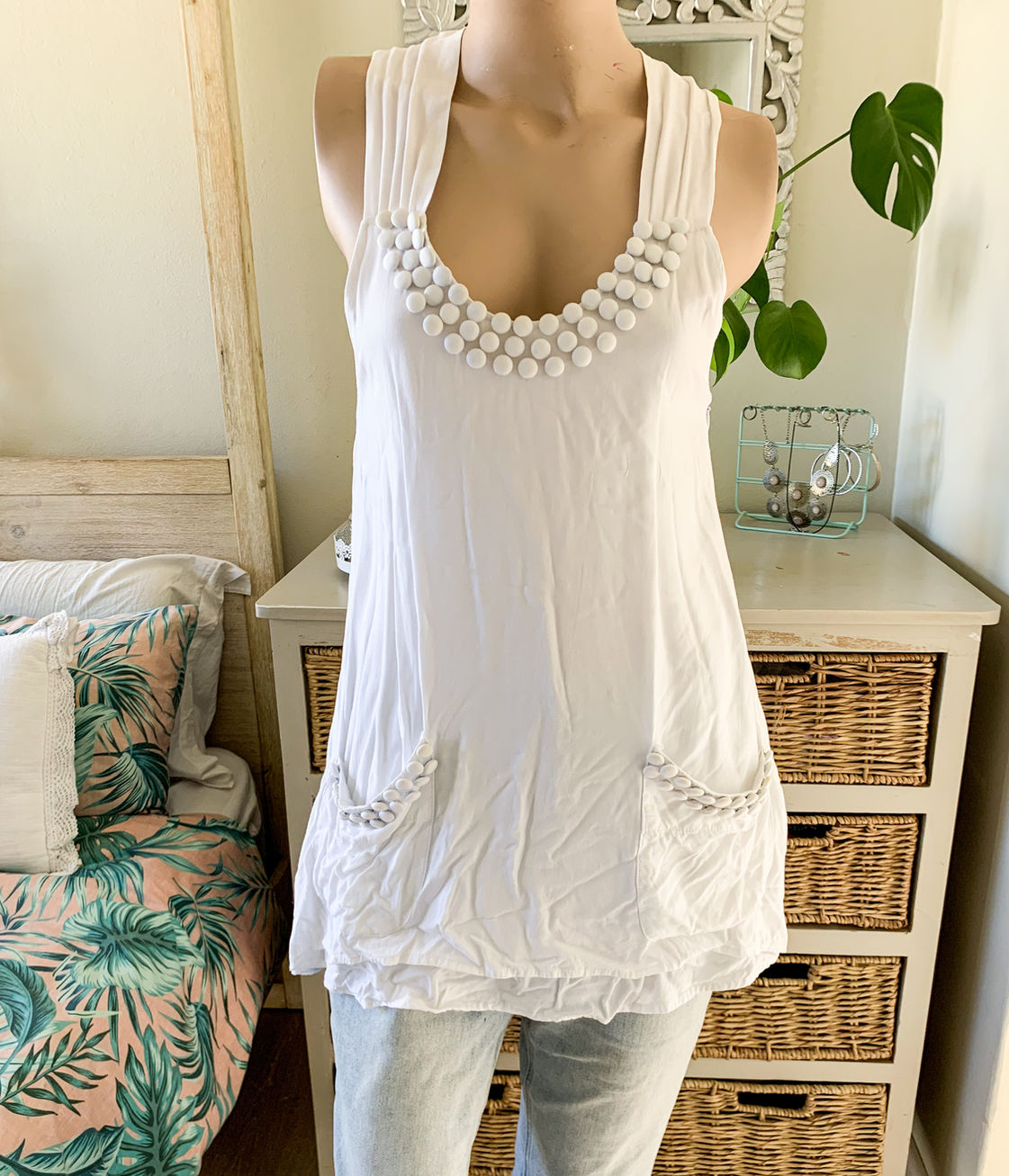 WHITE T-STRAP COTTON TUNIC – SIZE SMALL