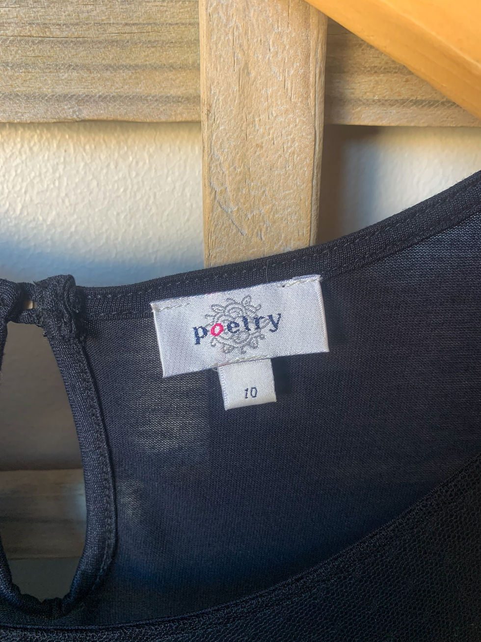 This Black Lacey Top by POETRY exudes timeless elegance and romance with its delicate lace detailing. Perfect for layering or wearing on its own, this top combines a sophisticated, feminine design with a comfortable fit, making it a versatile addition to any wardrobe.