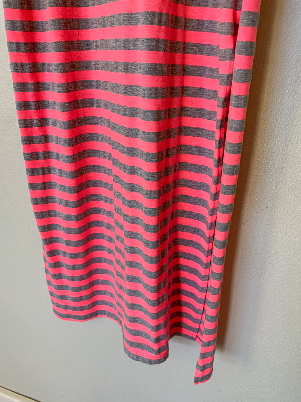 NEON PINK & GREY STRIPED MAXI DRESS – SIZE MEDIUM