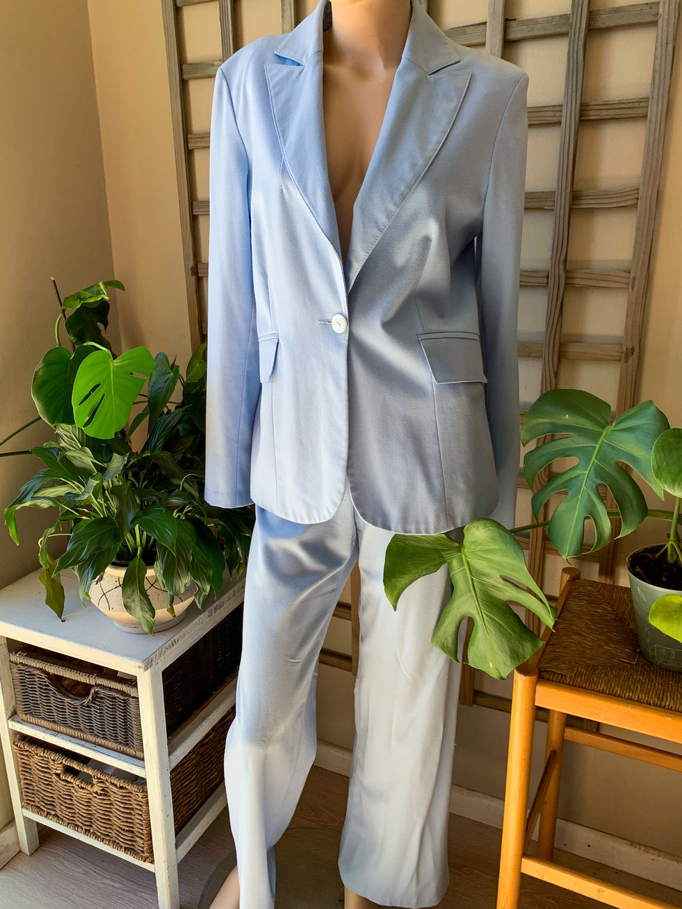 This Light Blue Viscose Suit Pants and Blazer Set by TRUWORTHS exudes modern elegance. The soft viscose fabric offers comfort and a flattering fit, while the chic light blue color brings a fresh, glamorous touch to any occasion. Perfect for a stylish, sophisticated look.